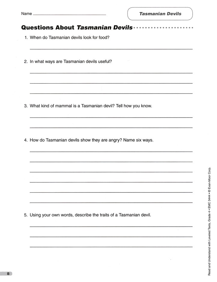 Supplement your students’ core reading program with leveled selections and activities that focus on comprehension, vocabulary, and other important reading skills. Over 20 stories, covering a wide range of topics, are correlated to specific Lexile levels ranging from 570-860. The reproducible stories are followed by a number of clearly identified skills pages for both group and independent activities; worksheets cover inferring and drawing conclusions, predicting, recalling information, building vocabulary, writing personal narratives, organizing information, applying related knowledge and more. 160 pages, softcover. Answer key included. Grade 4.